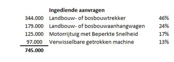 In totaal zijn er bijna 750.000 voertuigen in 2021 via de online tool geregistreerd. Veel meer dan verwacht. Onder de geregistreerde voertuigen bevinden zich 2.614 terminaltrekkers en 1.794 stratenreinigingsmachines.