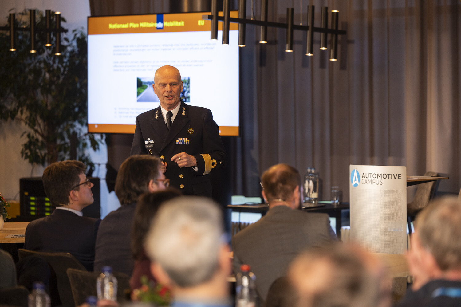 Generaal Han van Bussel, Directeur Logistiek bij het Ministerie van Defensie, ging in op de operationele kant van militaire mobiliteit. Het succes van Defensie staat of valt met goed functionerende logistieke ketens: van voorraden en transport tot cybersecurity, IT en voldoende gekwalificeerd personeel.